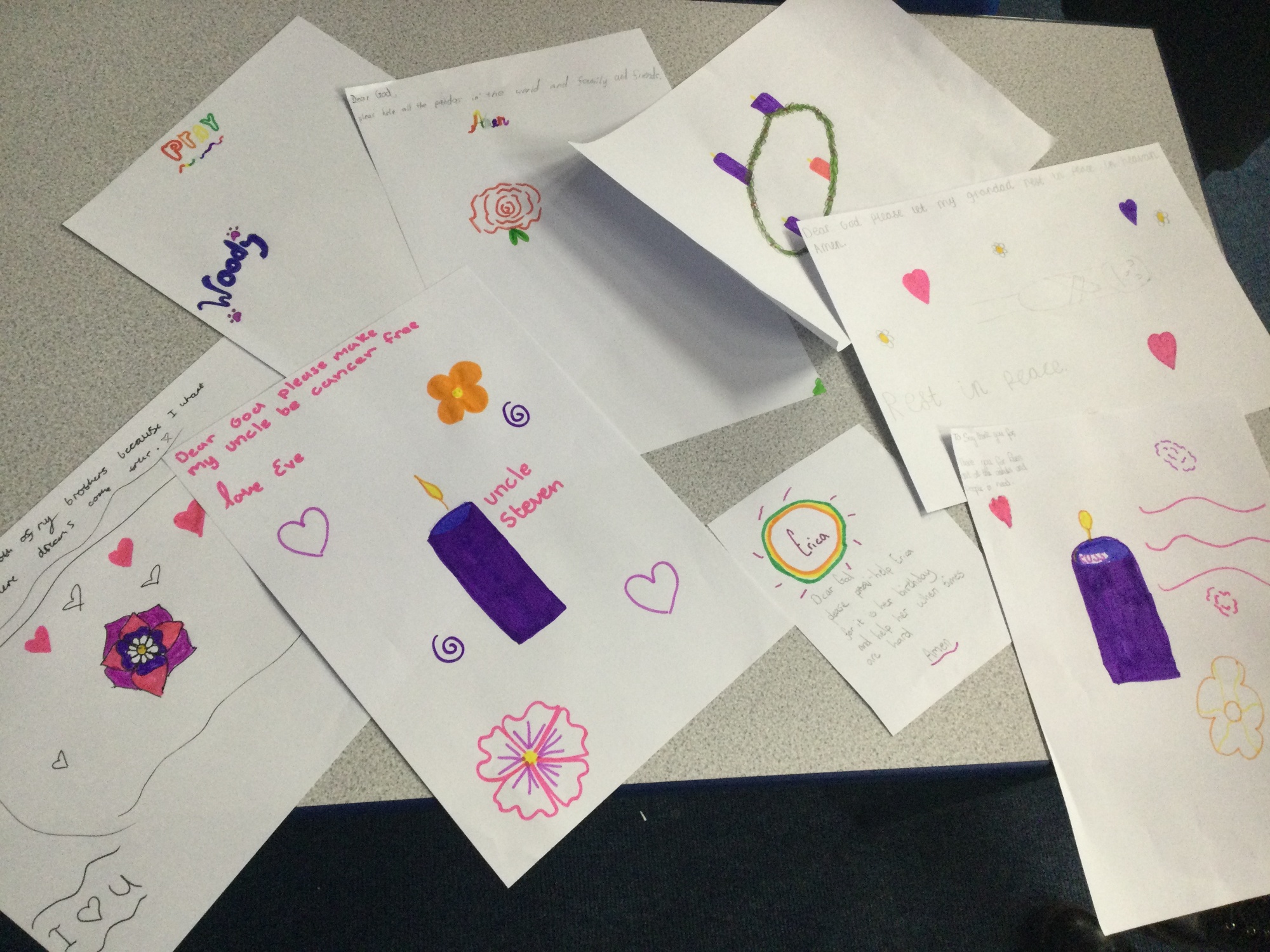 Today in prayer club we started by sharing our prayers. We then talked about how we could pray more during Advent to help us prepare for Christmas. We especially thought of people we know who are in need of our prayers. We thoughtfully created some artwork to present our prayers.
